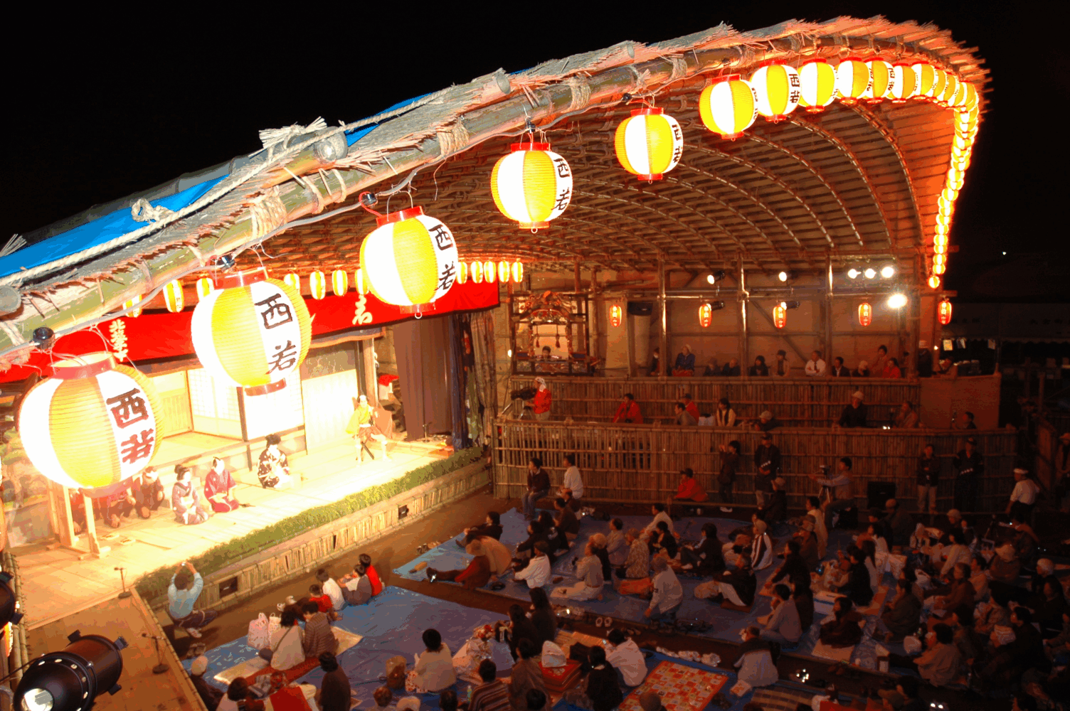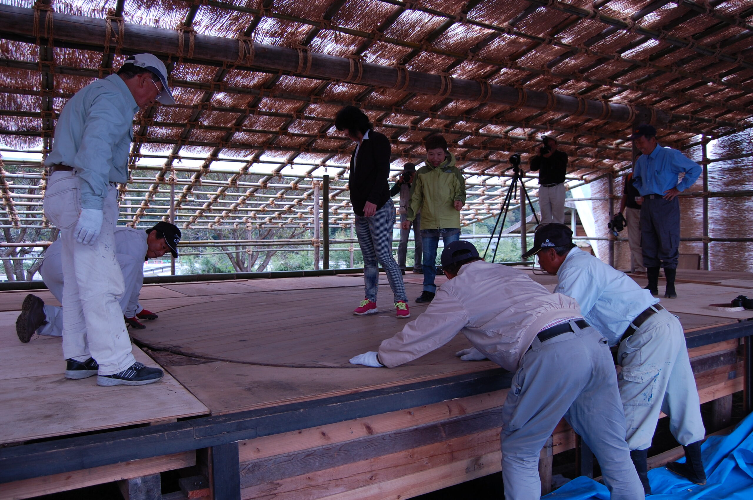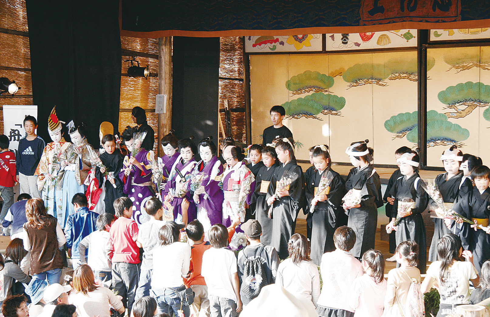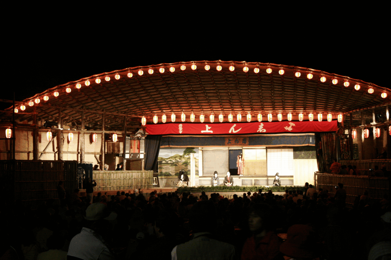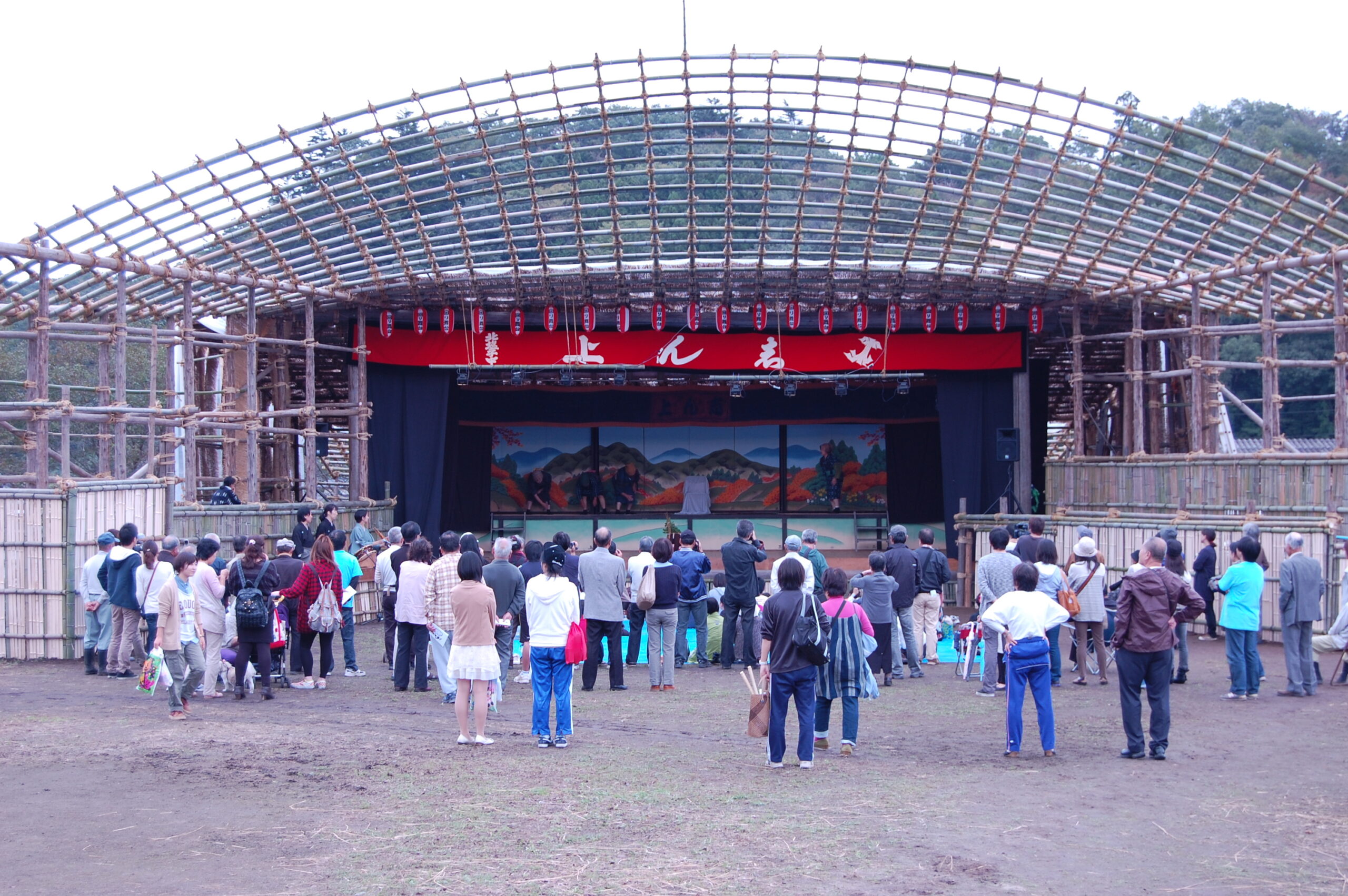 昭和20年(1945年)以来、この舞台の風習は途切れ、数多くの貴重な道具も倉に納められたまま忘れ去られようとしていたところ、1997年、地元住民の並々ならぬ努力により、半世紀ぶりの舞台復元にこぎつけました。以来3年に一度のペースで、2019年までに実に9回の舞台組立てと地芝居公演を実現し、ありがたいことにさまざまな団体・組織から多くの評価や賞賛をいただいてくこととなりました。