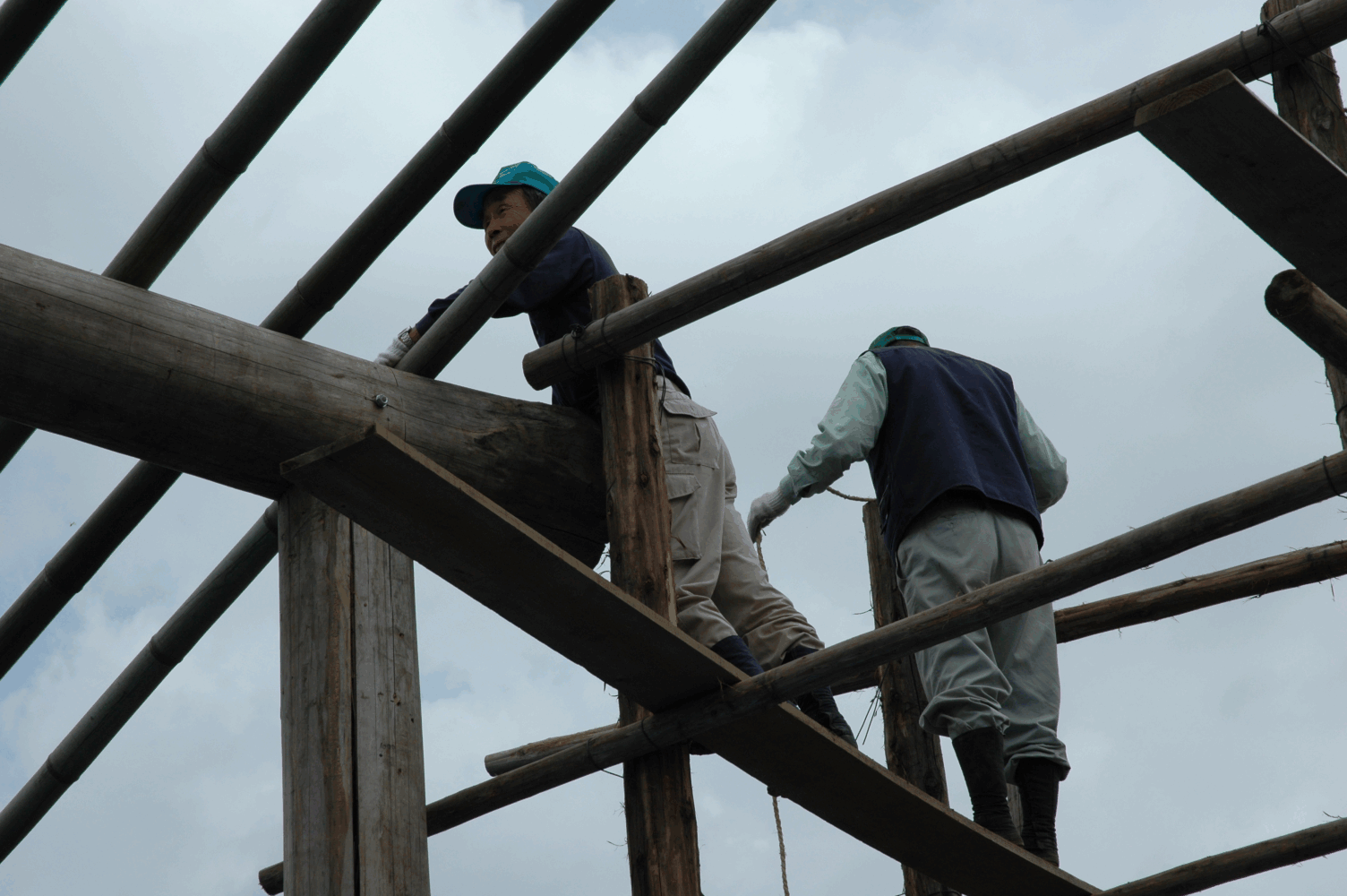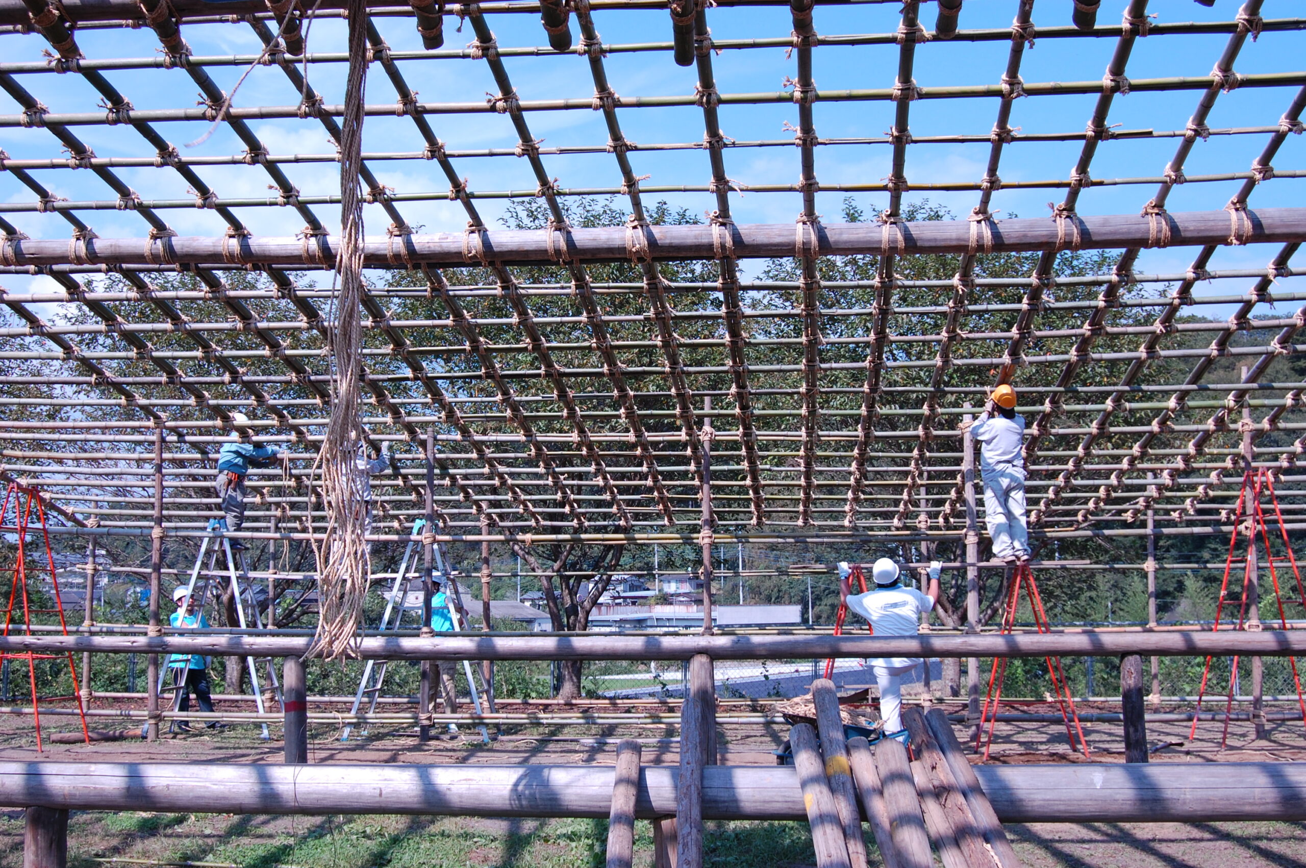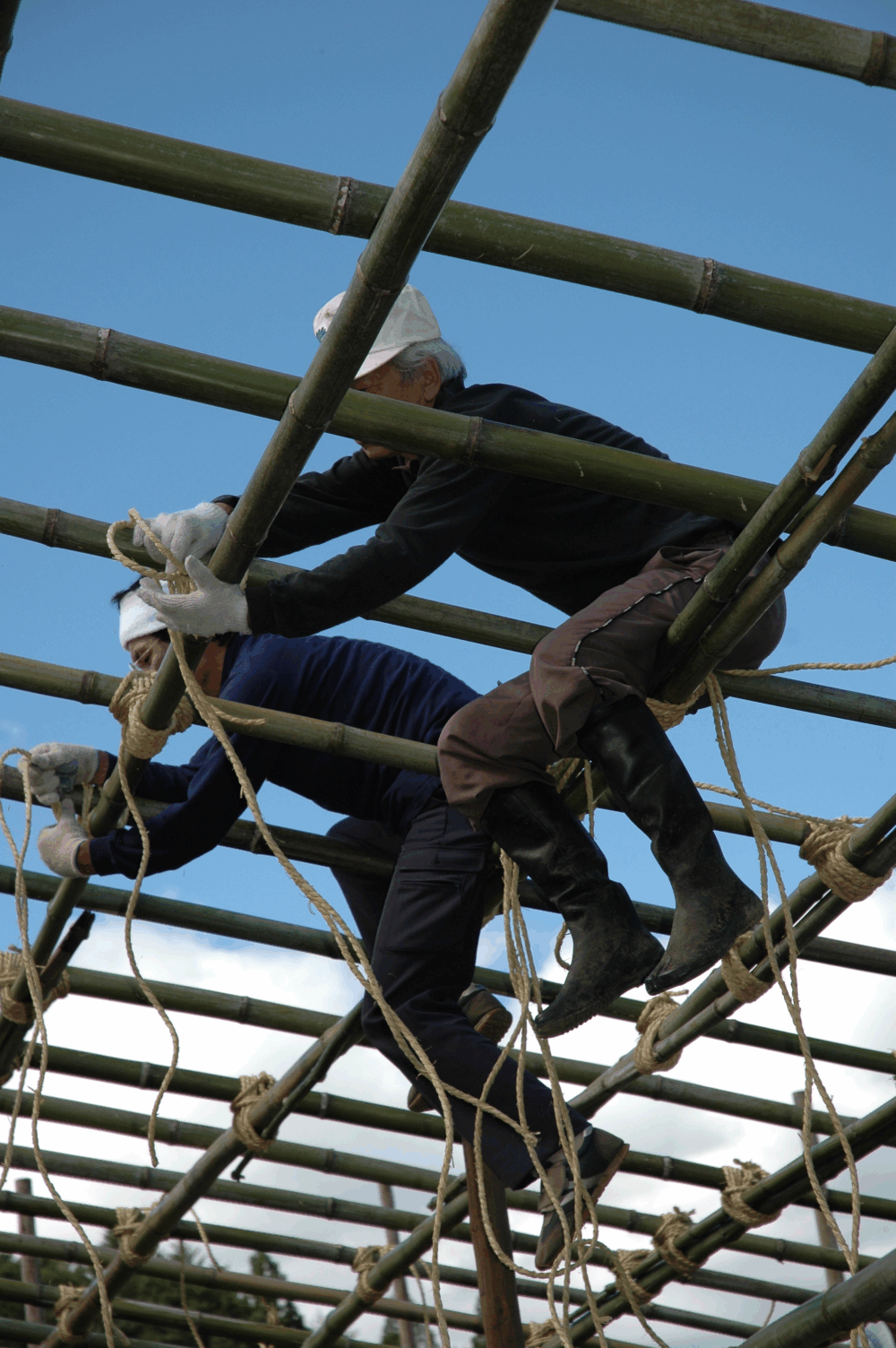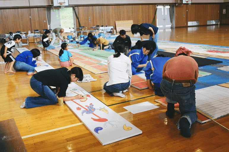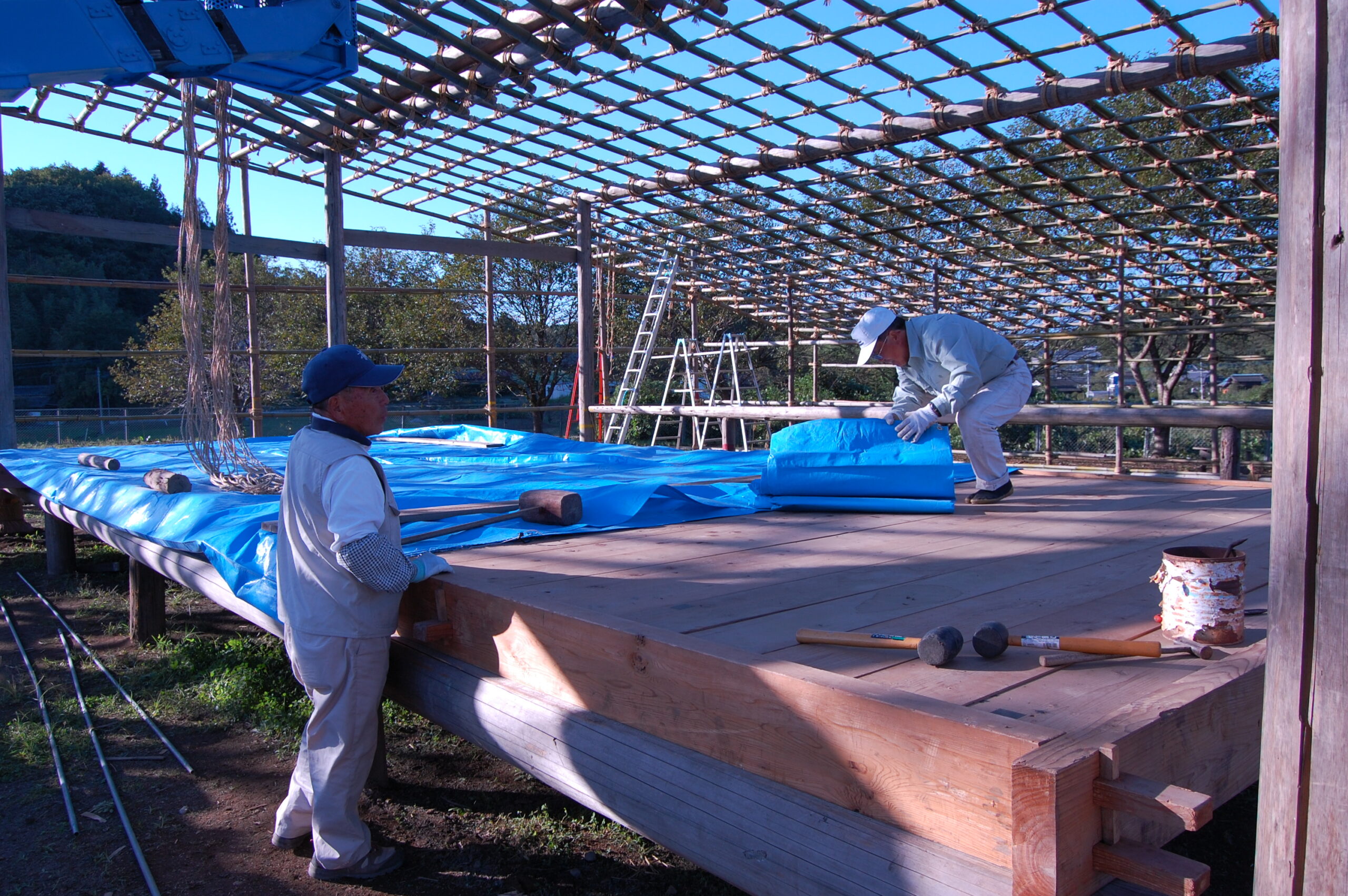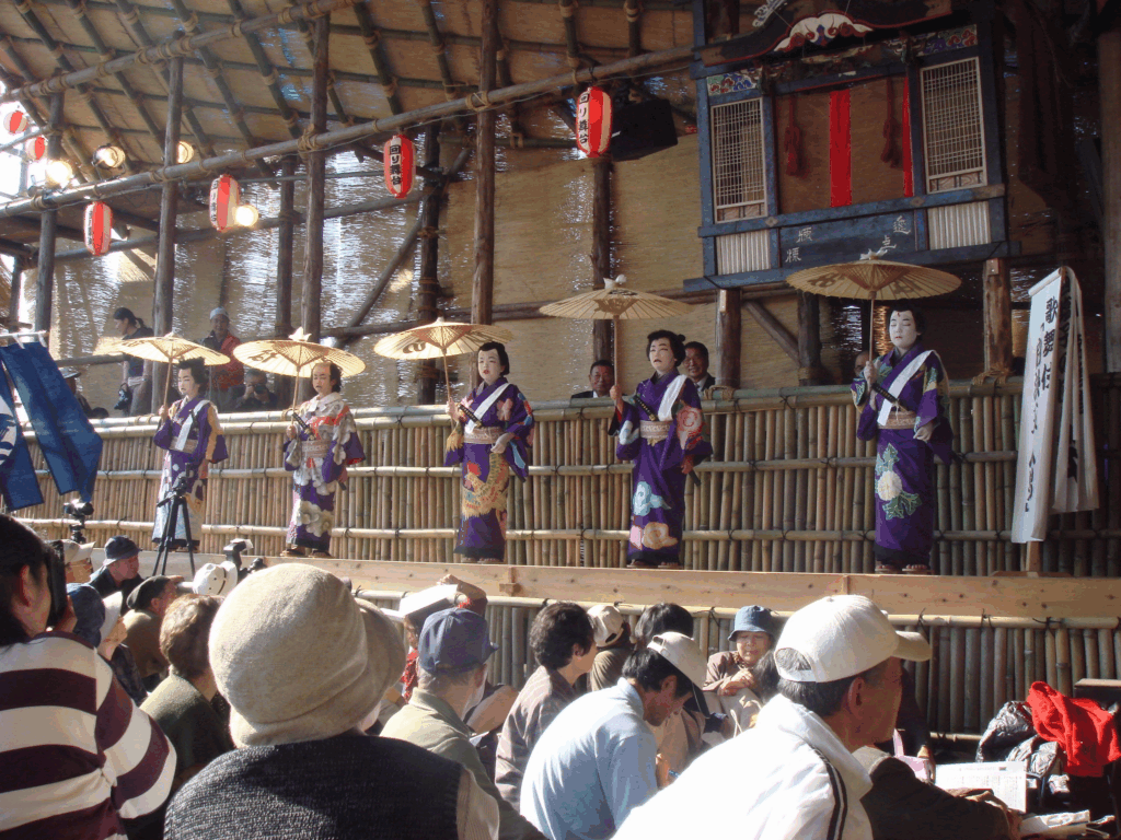 昭和20年(1945年)以来、この舞台の風習は途切れ、数多くの貴重な道具も倉に納められたまま忘れ去られようとしていたところ、1997年、地元住民の並々ならぬ努力により、半世紀ぶりの舞台復元にこぎつけました。以来3年に一度のペースで、2019年までに実に9回の舞台組立てと地芝居公演を実現し、ありがたいことにさまざまな団体・組織から多くの評価や賞賛をいただいてくこととなりました。
