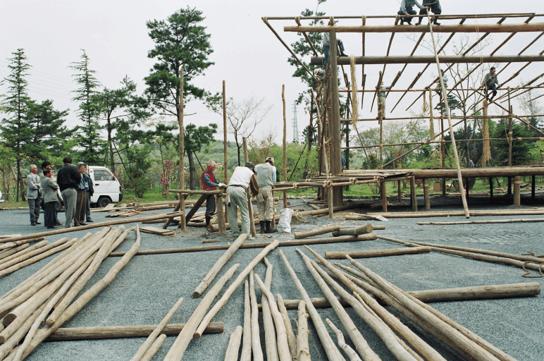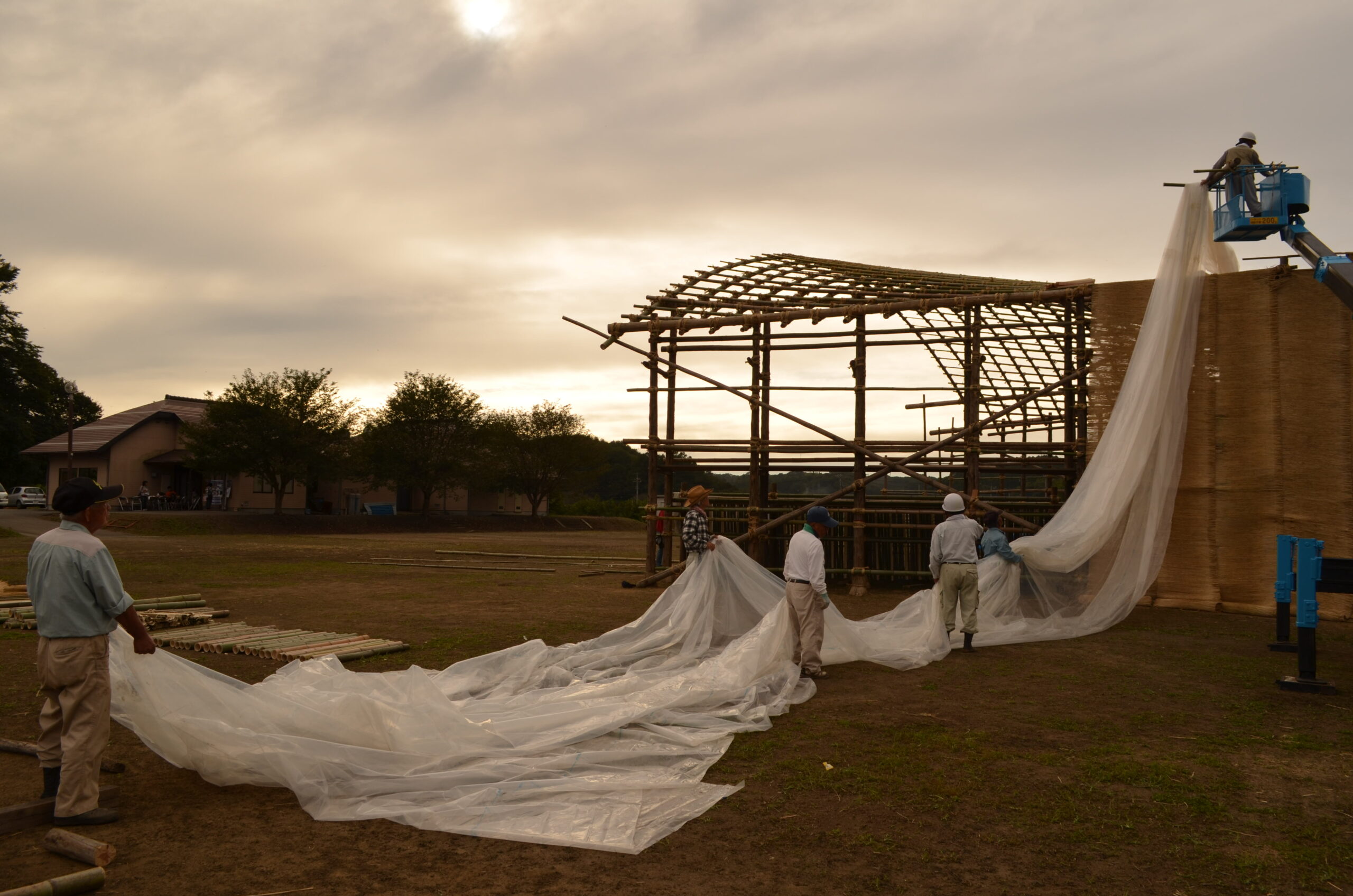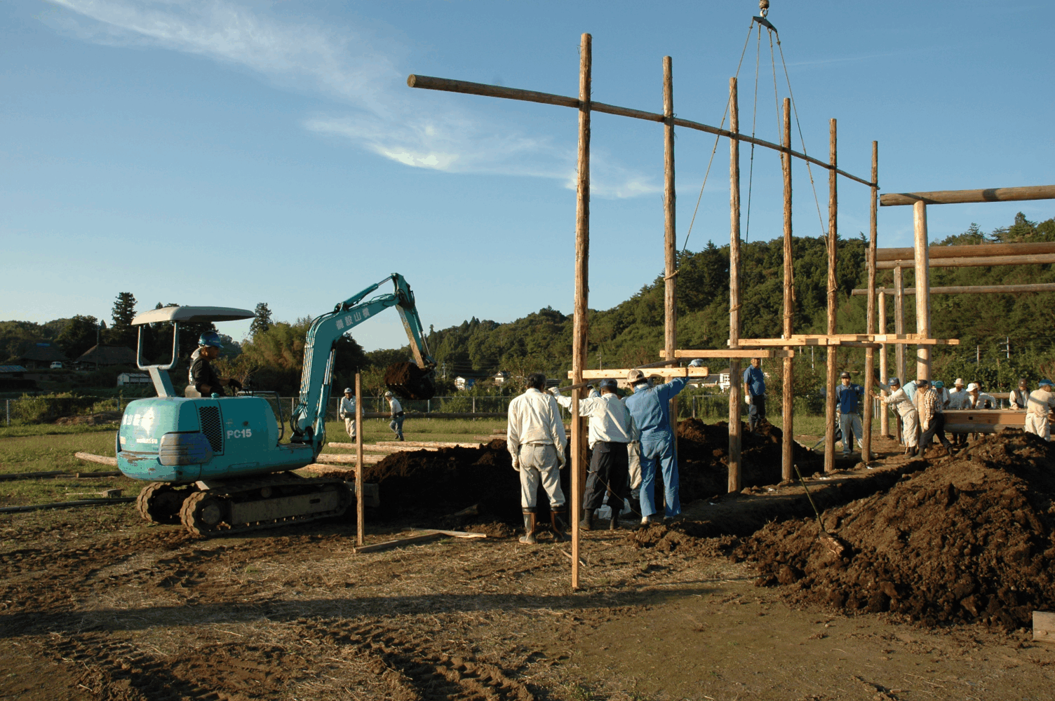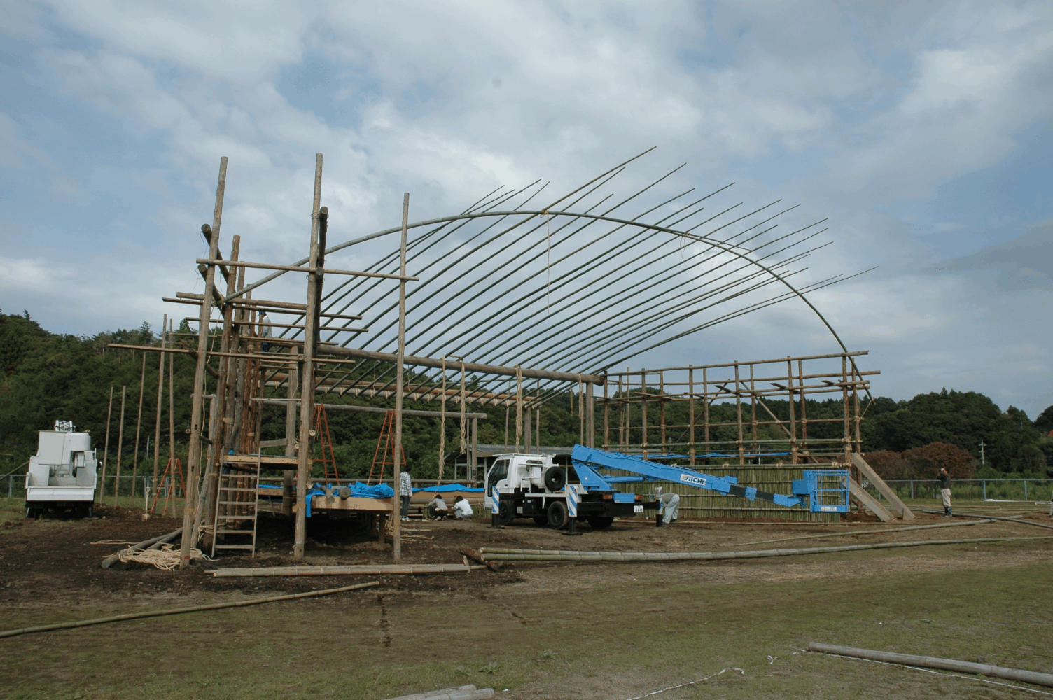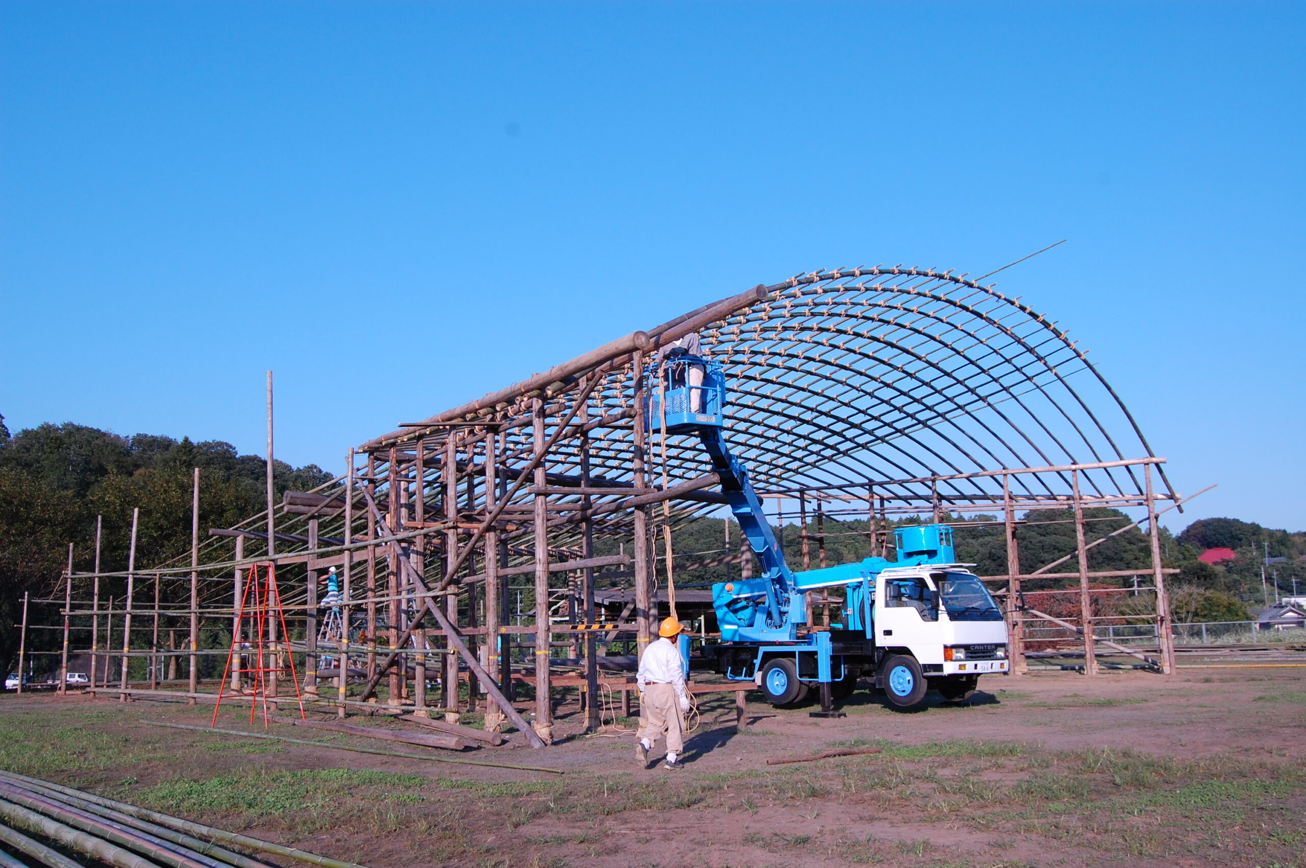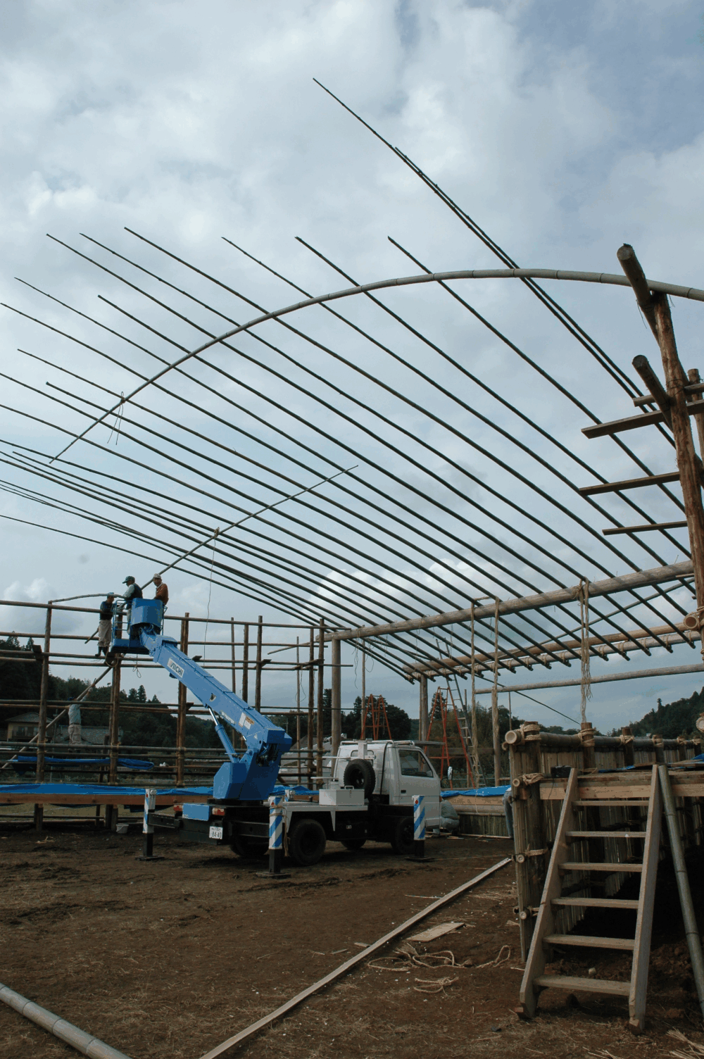 「西塩子(にししおご)の回り舞台」(茨城県有形民俗文化財指定)とは、ここ茨城の小さな里山~茨城県常陸大宮市西塩子地区で、200年ものあいだ受け継がれてきた、現存する日本最古の“組立式農村歌舞伎舞台”です。「回り舞台」を有し、大がかりな舞台ながらも「組立式」。公演後にはなんと潔く取り壊されて更地に戻されます。