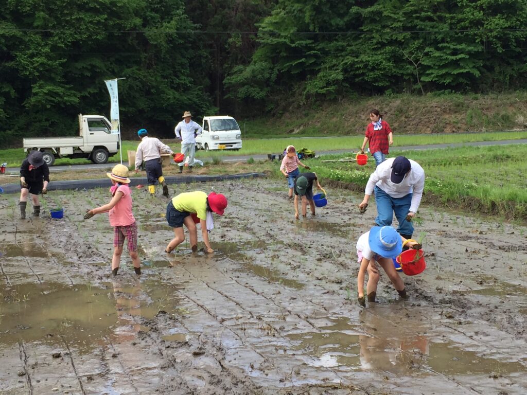 舞台の里へいらっしゃい!プロジェクトの体験事業『田植え』を行いました。