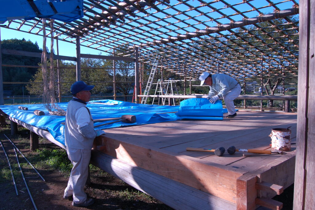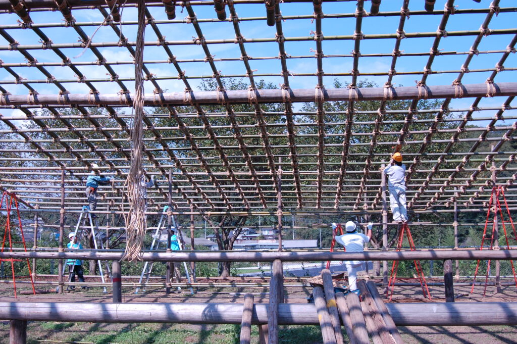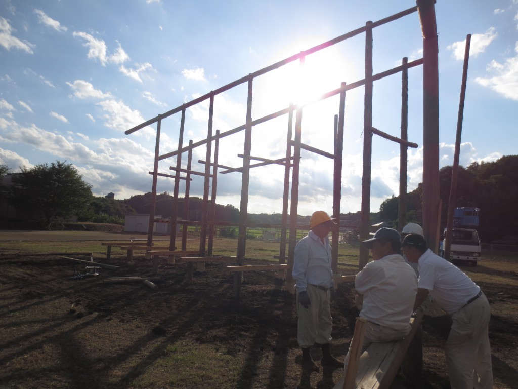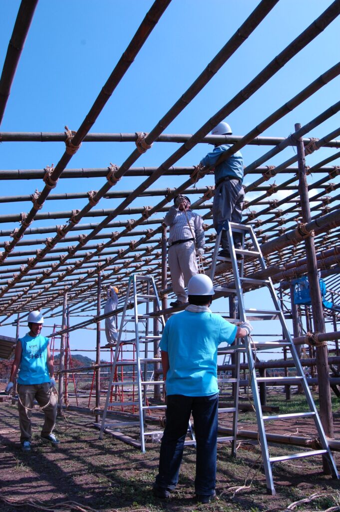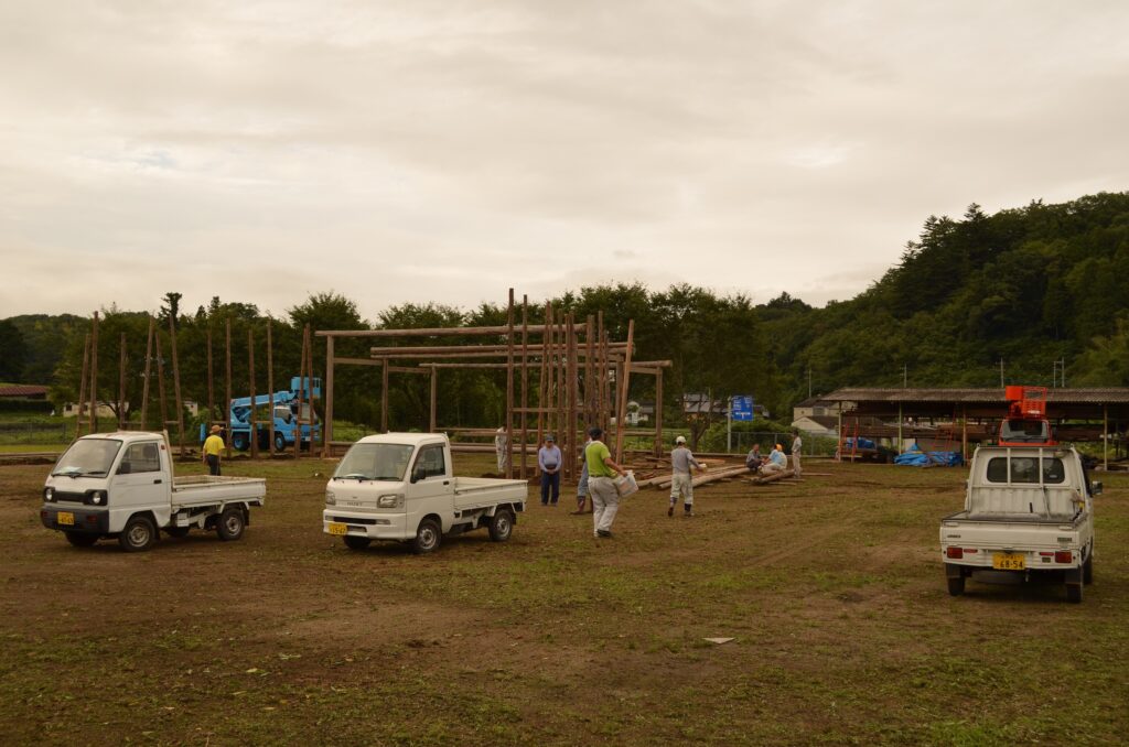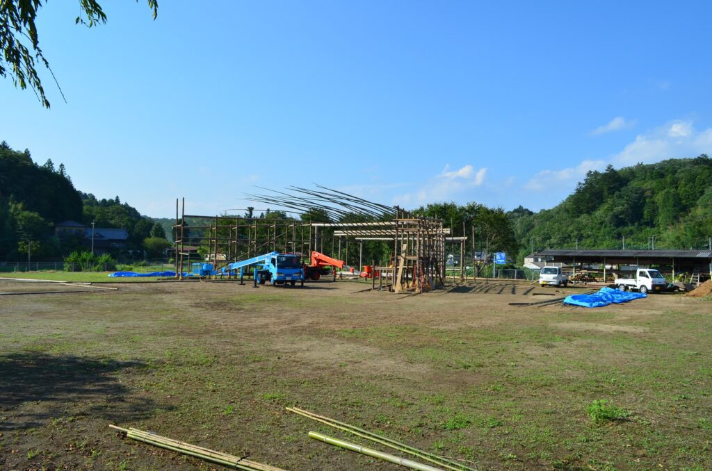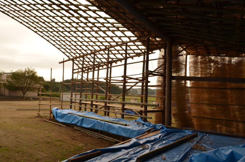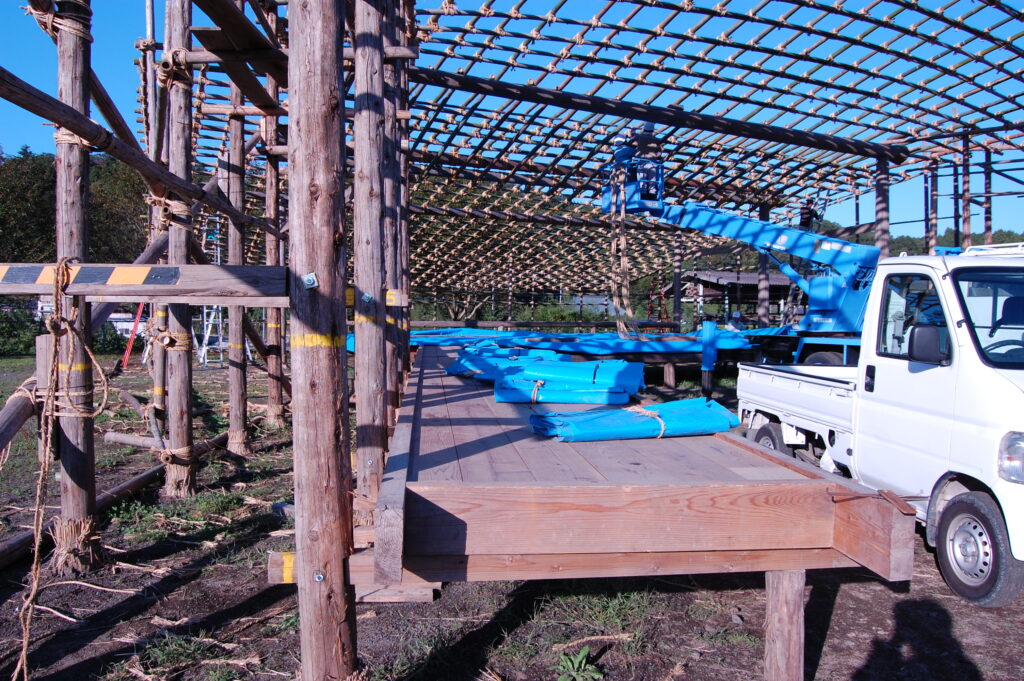 2019年稲刈り体験イベントにて ボランティアによる舞台組み立て作業