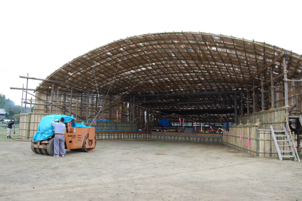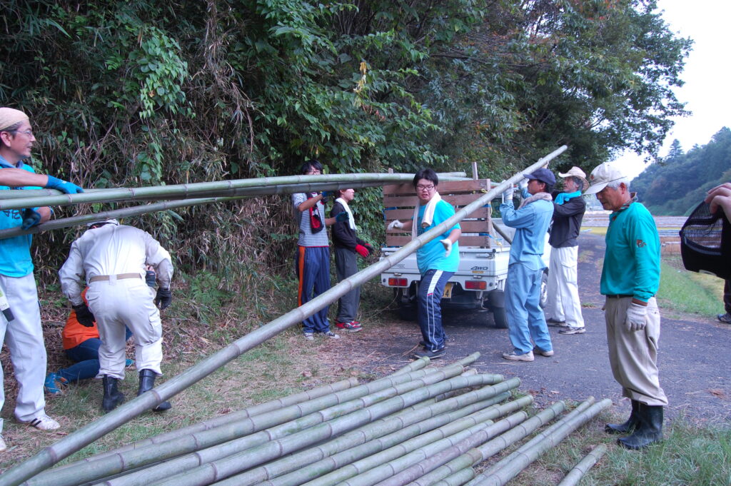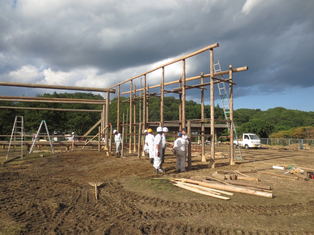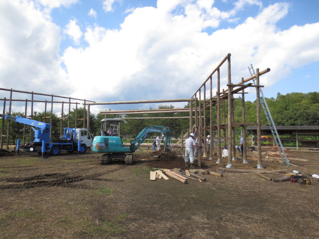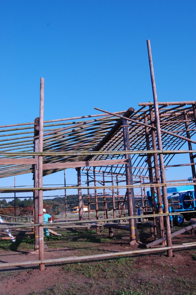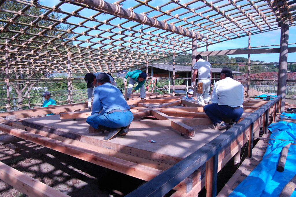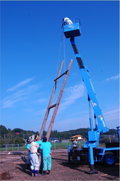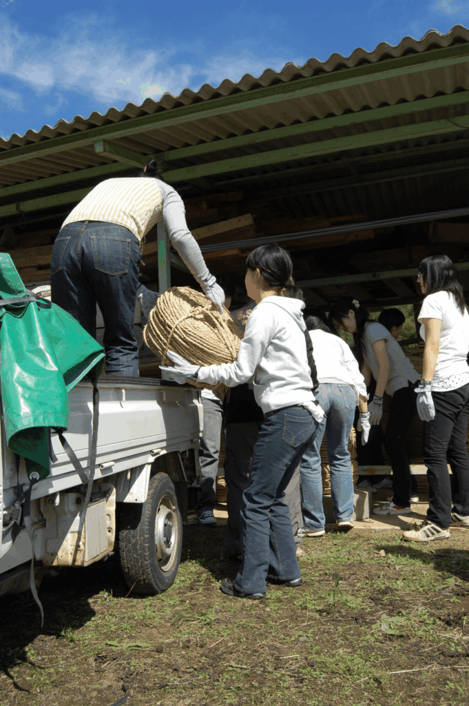 2019年稲刈り体験イベントにて ボランティアによる舞台組み立て作業