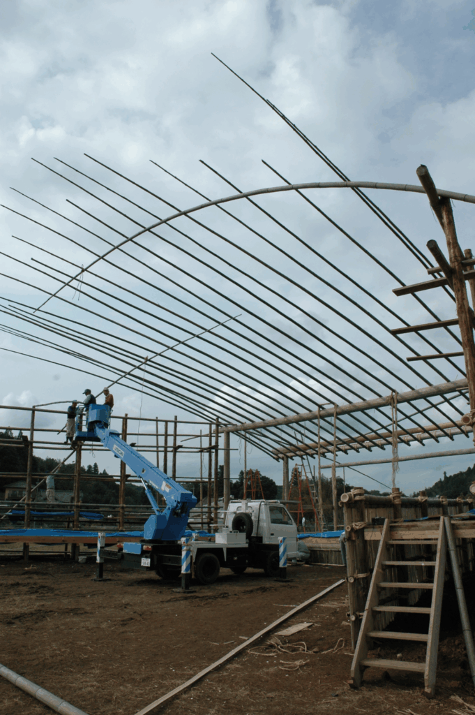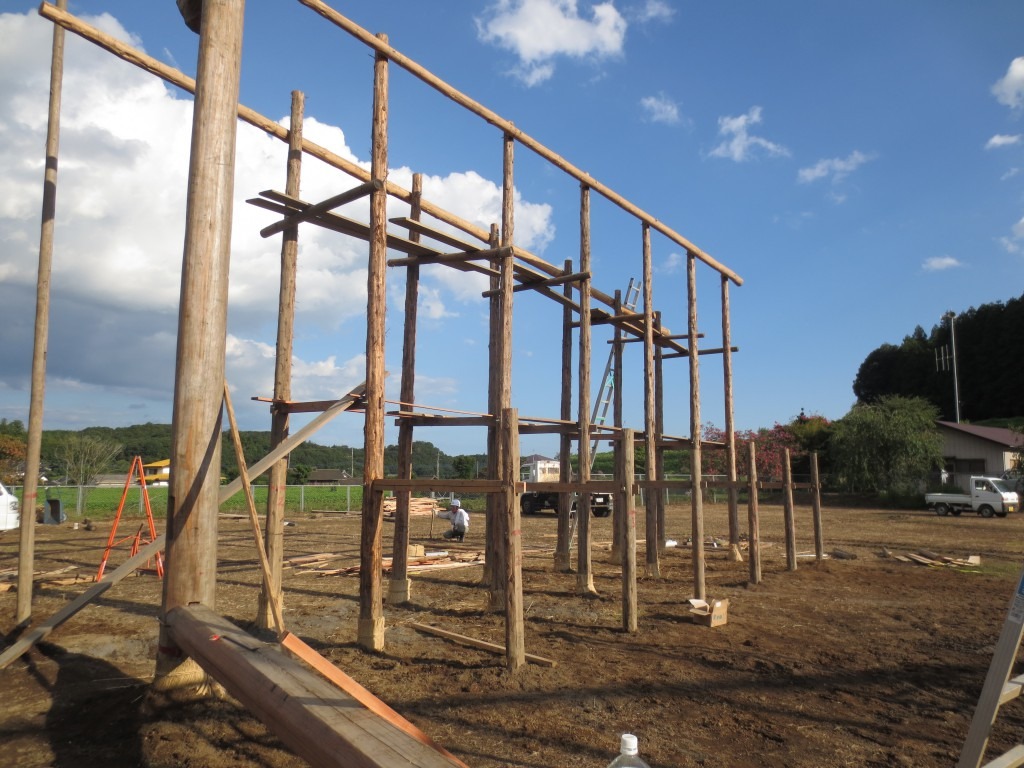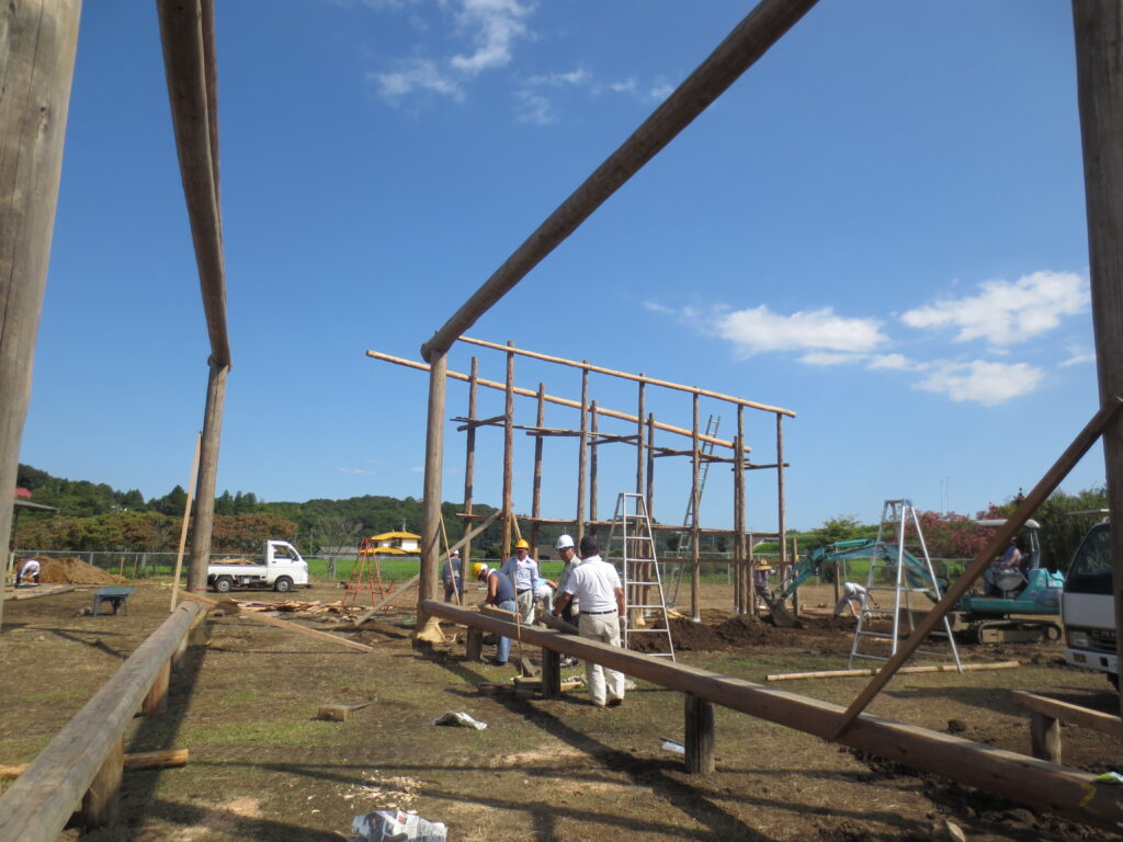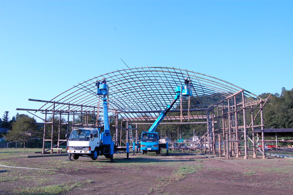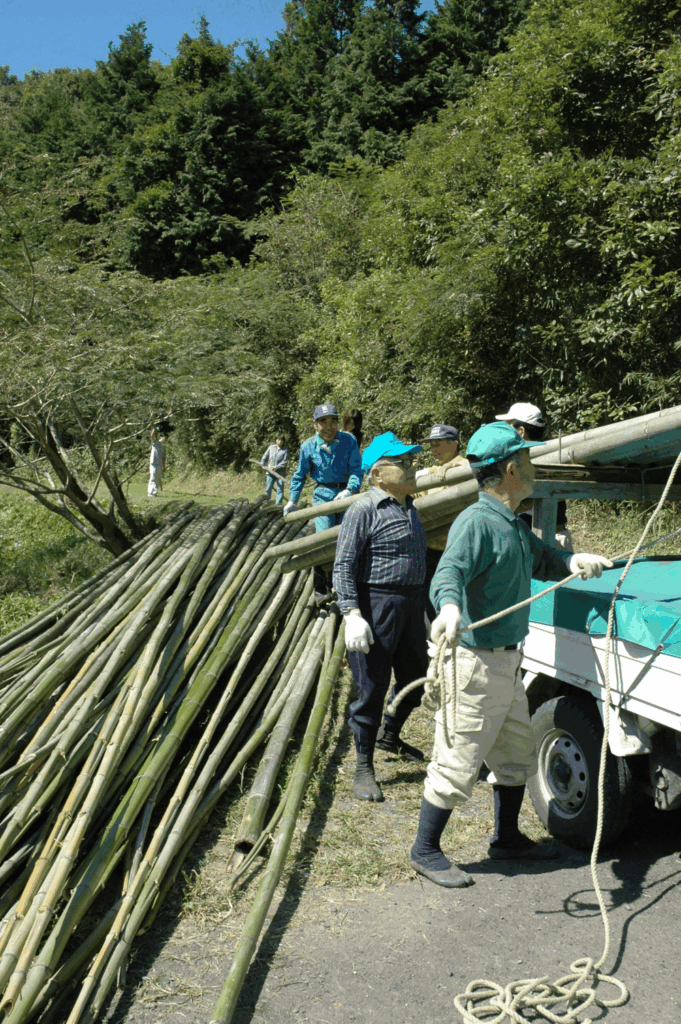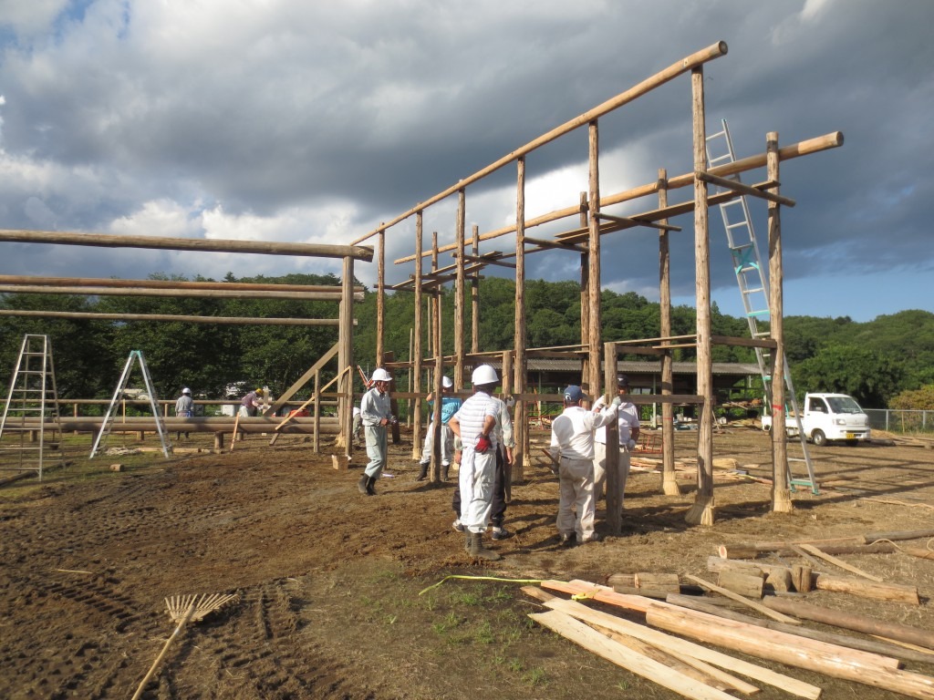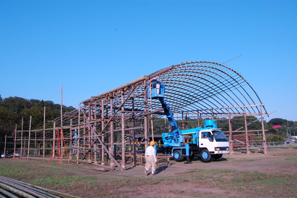 2019年稲刈り体験イベントにて ボランティアによる舞台組み立て作業