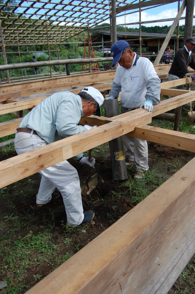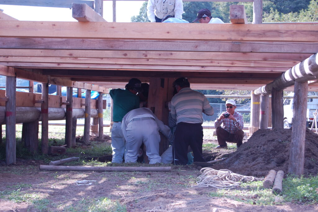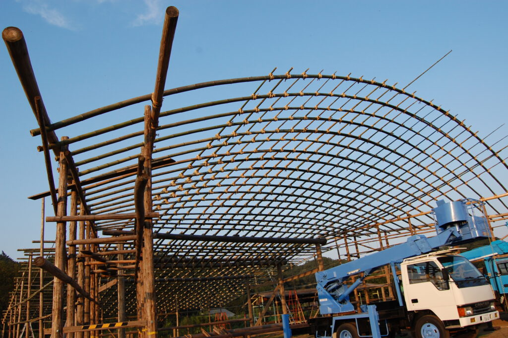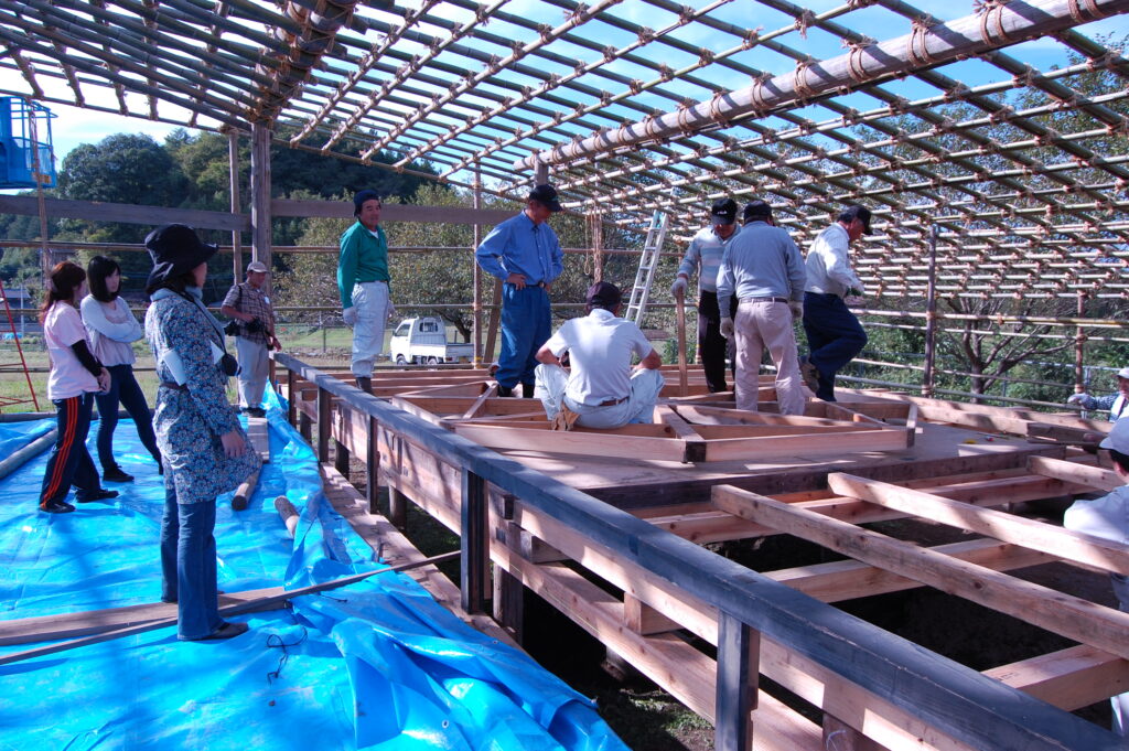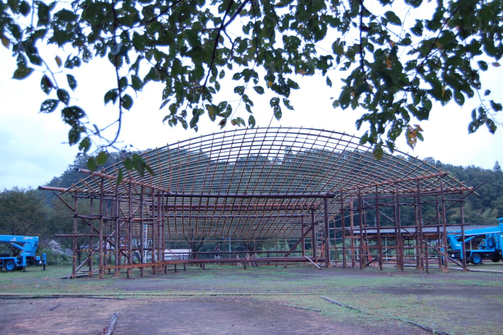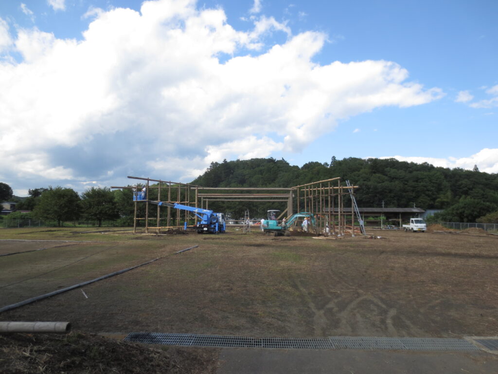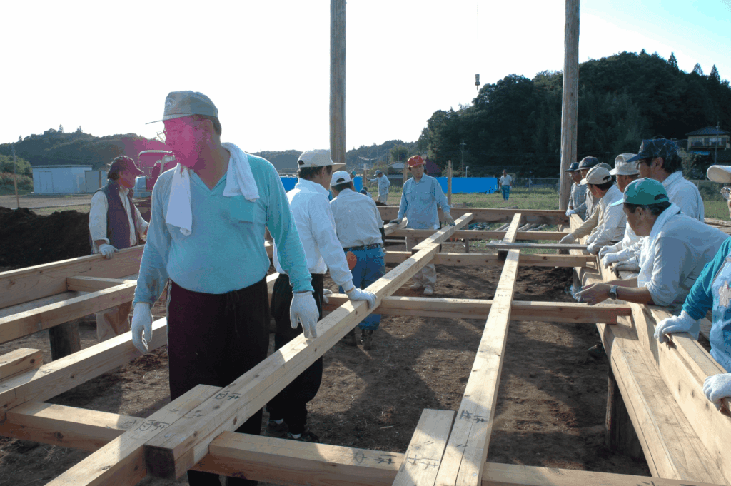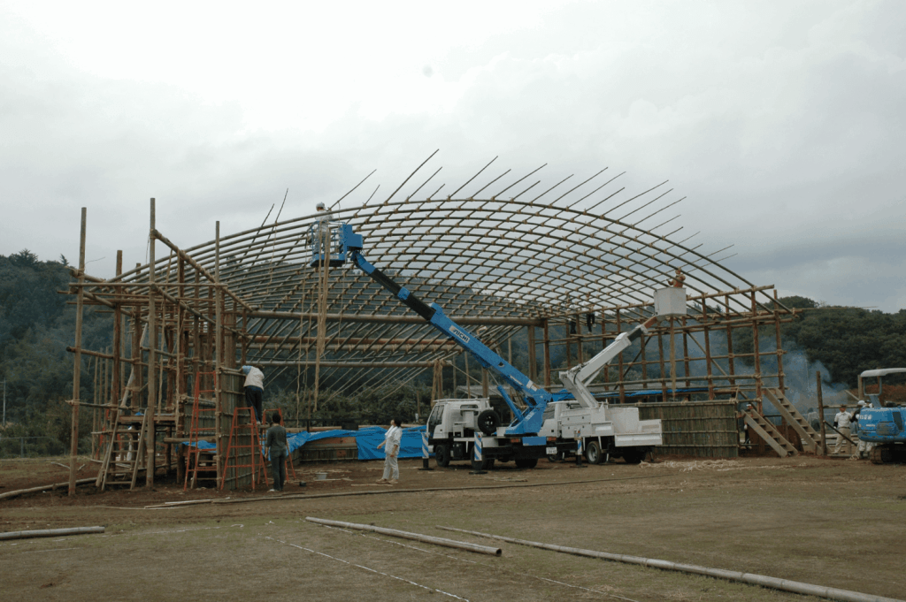 2019年稲刈り体験イベントにて ボランティアによる舞台組み立て作業