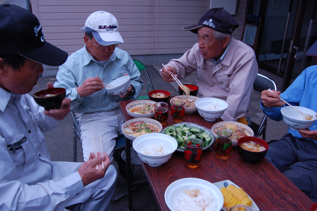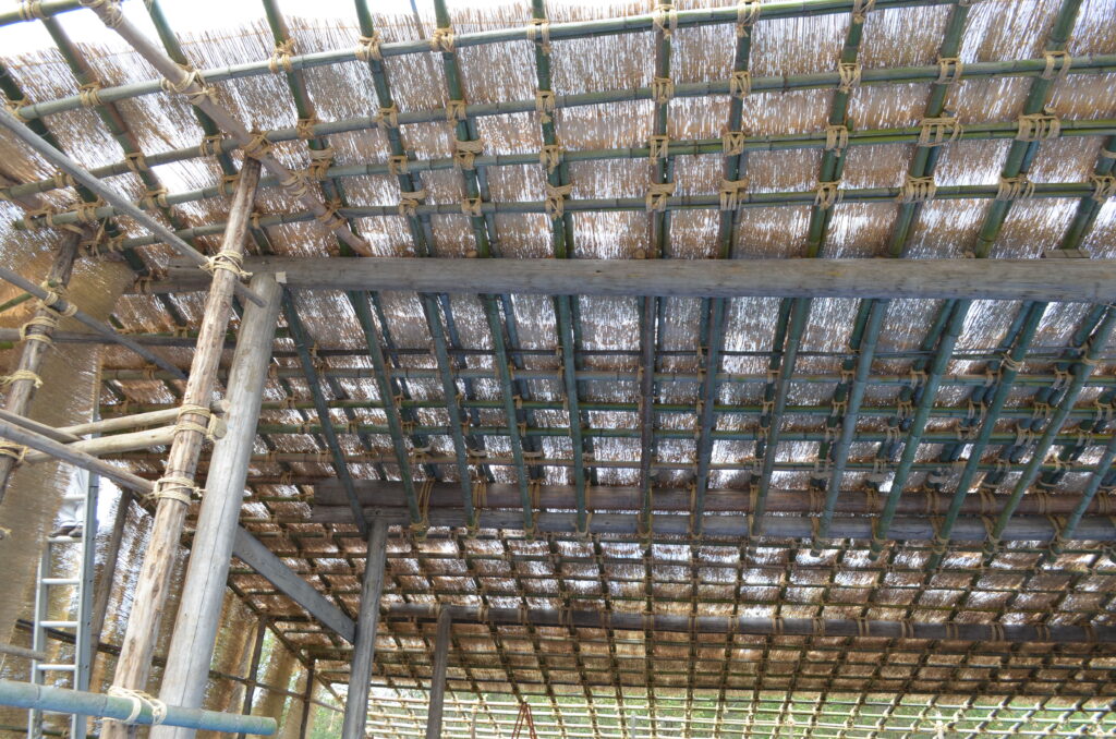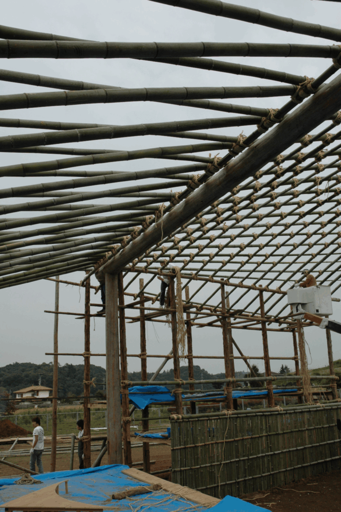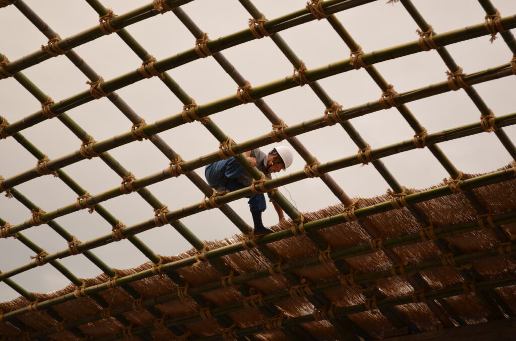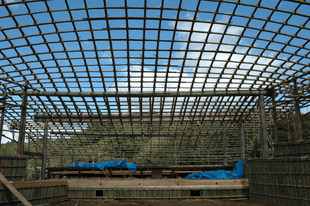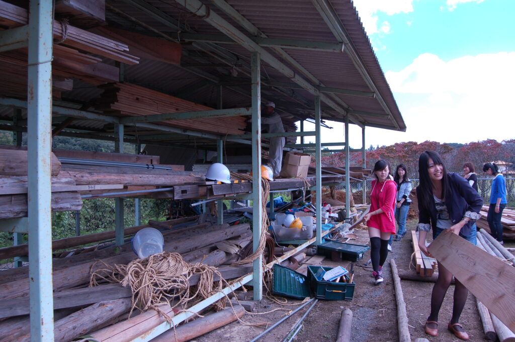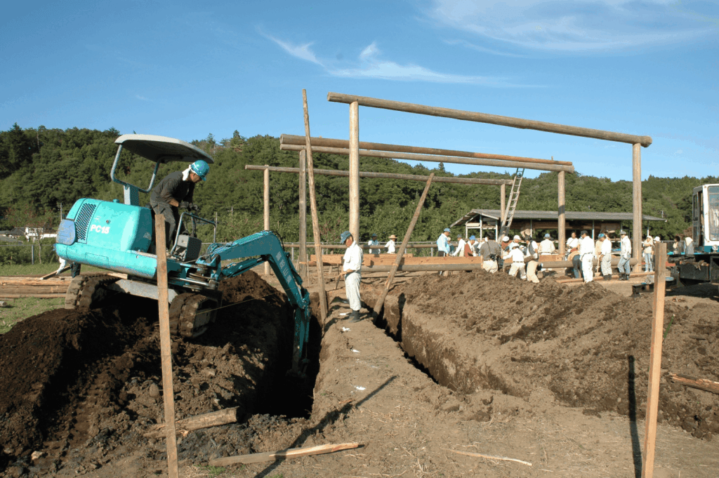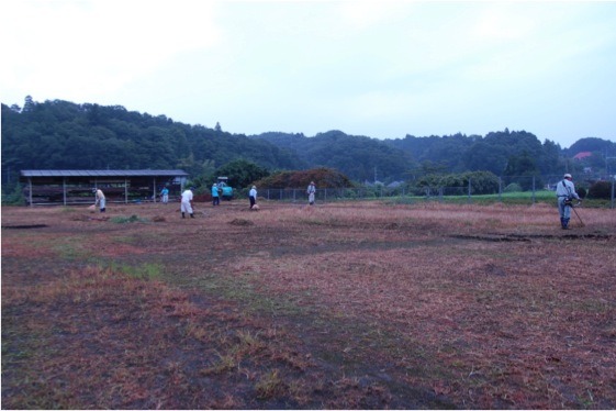 2019年稲刈り体験イベントにて ボランティアによる舞台組み立て作業
