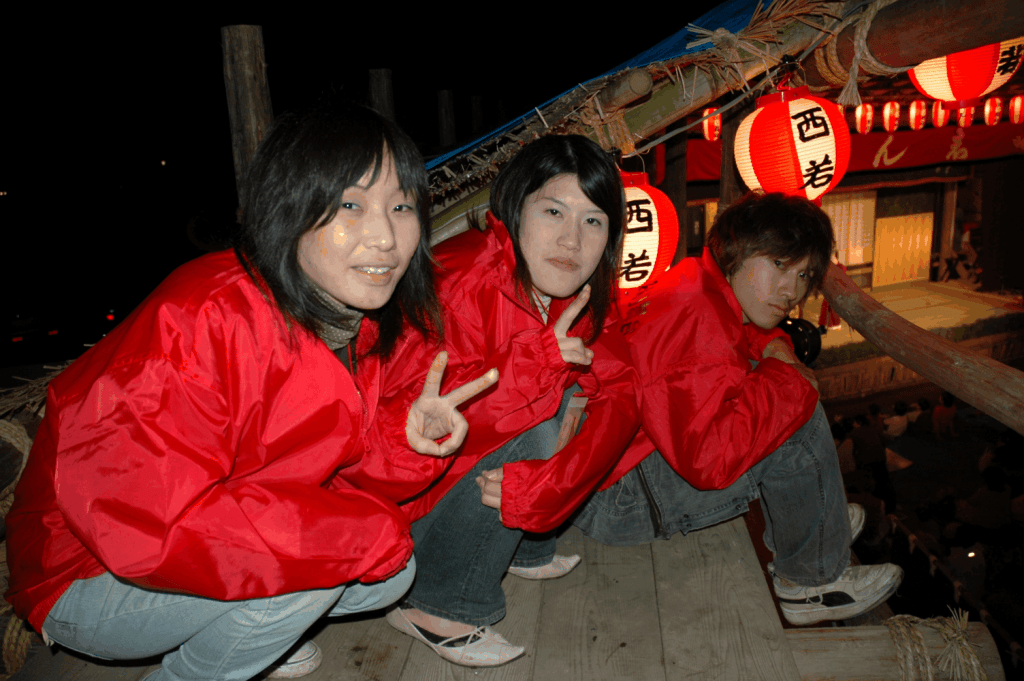 幕に描かれた帆掛け舟。「西若」とは西塩子の若衆の意。