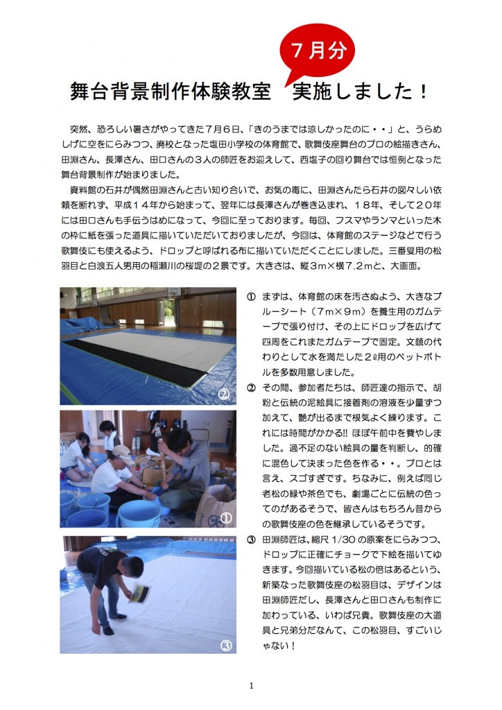 西塩子の回り舞台の大幕。高さ3.3m、巾11.5mの引幕。