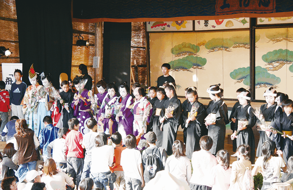 熱演した子どもたちに先輩から花束のプレゼント/平成18年